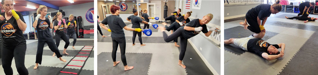 Kickboxing class is a fun and dynamic workout designed to help you punch and kick through your goals of increased wellness and strength. We welcome all beginners, ages 13 and above, to learn to strike with power and speed while enhancing your flexibility and endurance, plus build confidence with some serious self-defense skills!
